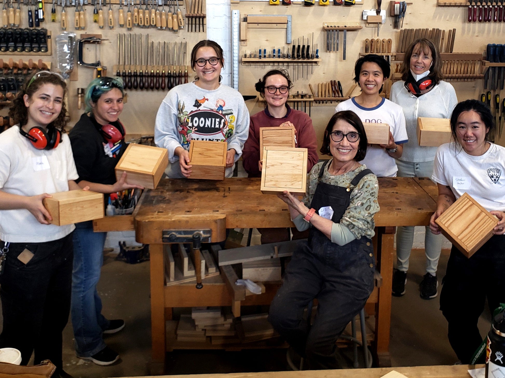 Comfortable clothing and close-toed shoes. Boots or sneakers are fine and long pants are preferable. Do not wear loose or baggy clothing and please tie back long hair. No dangly jewelry. Please note, this is a woodshop with no AC. You can expect to get sweaty and dusty. Woodworking is hard work!